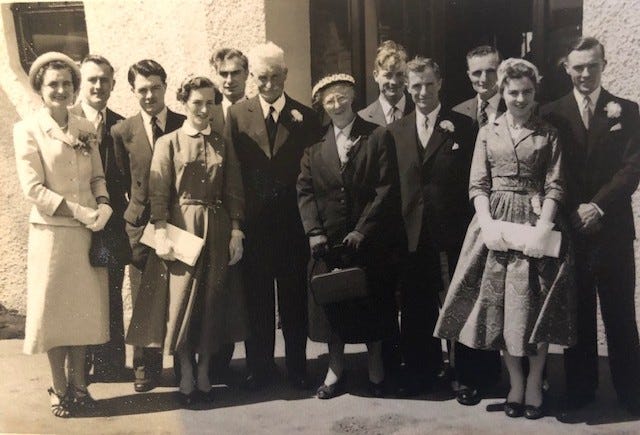 Moore’s parents were James and Maria Chestnutt who set up home in the townland of Ballymagarry, not far from Whiterocks Beach. They had ten children - seven sons and three daughters. Moore is the last man standing - the seventh son. The gathered today are his family - sons, nephews and nieces - a Chestnutt reunion. The ten had twenty-seven children between them and here we lie - a smattering of that remnant.
