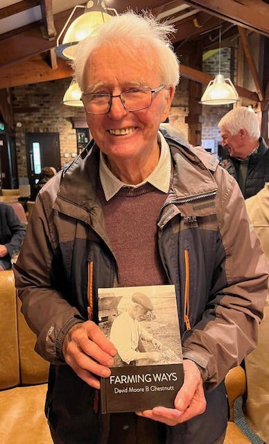 Back at the hotel - a surprise. Uncle Moore has published a book of poems and reflections. Lest we forget, he describes the sounds of our fathers: the traction engine, stackyard rats, the turnip shredder, the field fiddler, the plunger churn and the barn thresher. There is delight, laughter and happy rememberings. His siblings would have been proud.